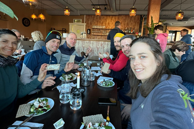 Nach 800 Metern in Bewegung Stillstand. Stau. Nichts, das das Team nicht erwartet hätte. Alles läuft sehr gesittet ab. Am Start noch zusammen erreichen Marion, Claudia, Norbert und Patrick drei Kilometer später verstreut und im Schnitt nach ca. 40 Minuten den höchsten Punkt der Strecke.