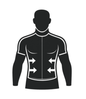 The air channels in this material minimise air resistance, ensure optimum aerodynamics and give you an extra edge over the competition. An insert made from our own airy Race Air mesh provides ventilation under the arms.